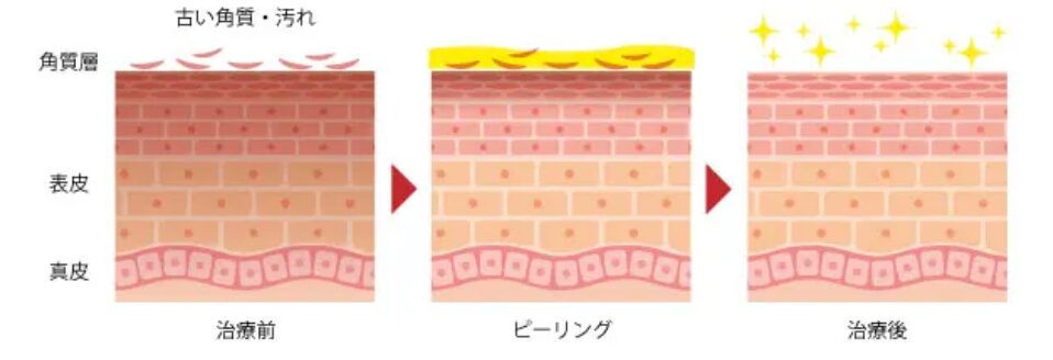 ケミカルピーリングは、酸性の薬剤を用いて角質層を溶かす方法です。